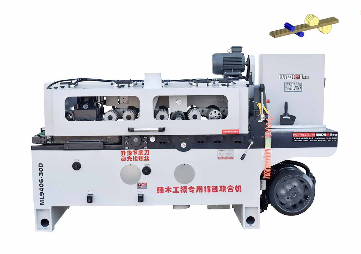 1. 本機(jī)械將上下多片鋸與雙面刨合二為一,根據(jù)預(yù)調(diào)尺寸一次進(jìn)給就能鋸解出多根木條同時(shí)進(jìn)行雙面刨光, 降低了木料損耗率,提高了效率。